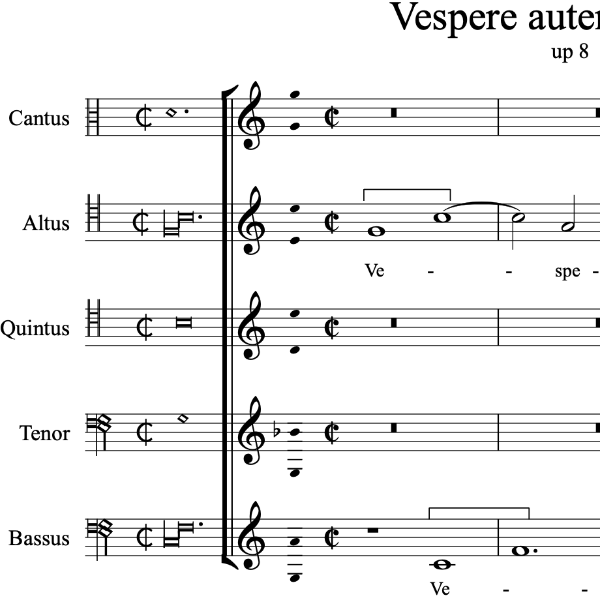 Source: Cantus/Altus/Tenor/Bassus, Musica motteta materna lingua vocata quinque vocum (Venice: Gardano, 1549; RISM 1549/6); Quintus, CZ-K III S 17.2/391]
